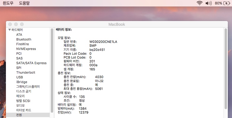 배터리사이클수가 135입니다(사진참조)