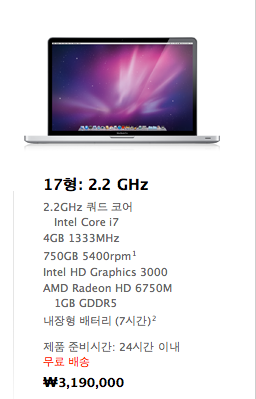 1. 물품명 : 맥북프로 17" 미개봉