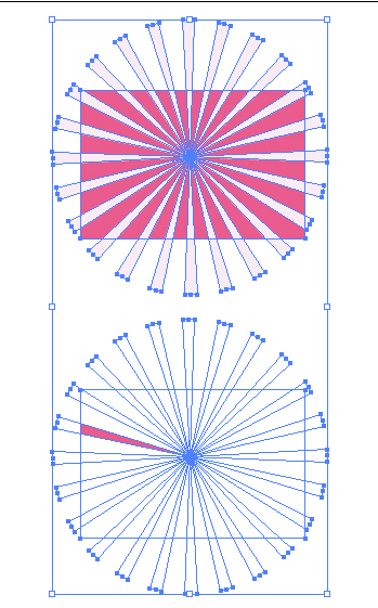 2.빛살무늬 오브젝트들을 모두 선택하셔서 패스파인더의 옵션중에 합집합 으로 합치셔서 네모칸을 마스킹해주셔도되요.