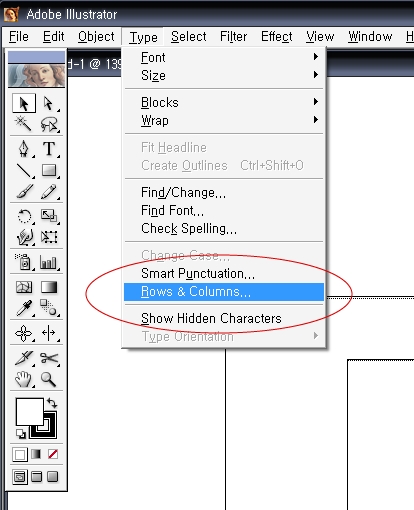 간단한 표그리기좀 할라고 일러스트 10에 있는  Type > Row & Colums를